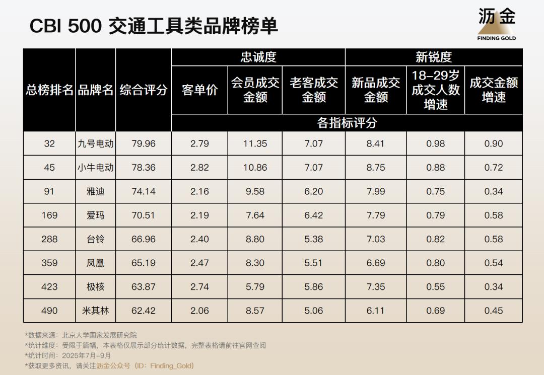 小牛电动和九号电动在CBI榜单新锐度的评分高居榜首,这直接印证了它们更受年轻人青睐,而且能转化为实在的财务和市值增长。