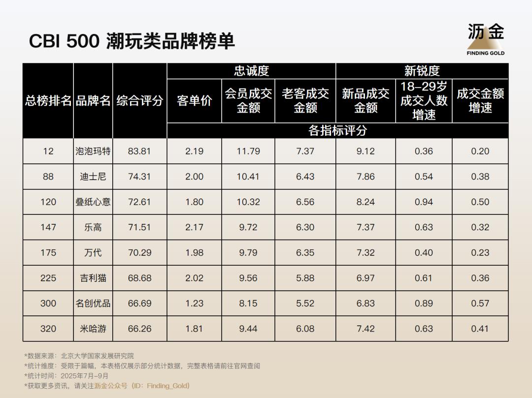 所谓的情绪价值,反映在数据上就是CBI榜单的“忠诚度”和“美誉度”指标,泡泡玛特和老铺黄金明显都拿到了高分,这也佐证了这一点。