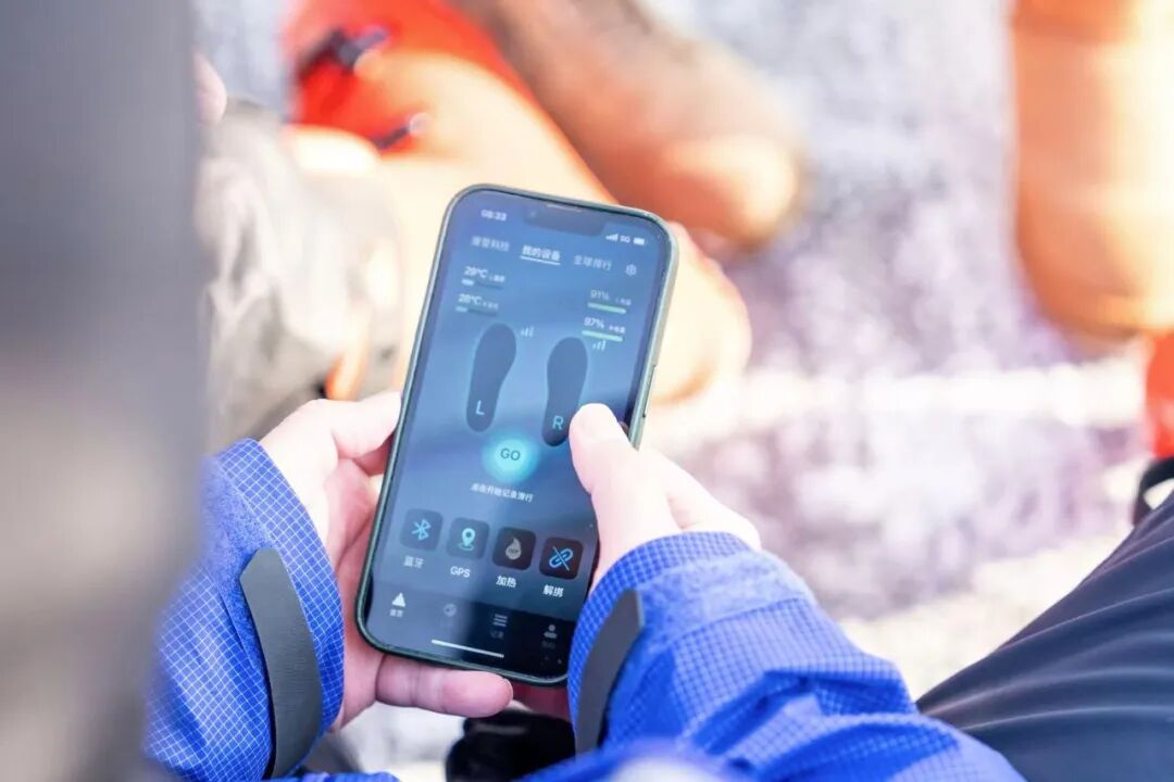 使用时,鞋垫里密集的传感器可以采集脚部动作的每一个微小发力,并回传至手机APP端,自研的AI运动模型会基于这些数据分析用户的滑行速度、立刃角度,提醒你在哪里容易摔倒,甚至是否该换新装备了。当然,它还有最基础也是极为刚需的一项功能——加热。