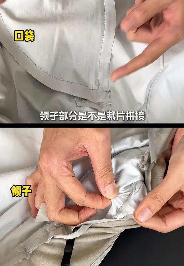 电商服装博主H先生小韩哥指出,该件冲锋衣口袋、领子部分没有压胶,样品也检出微量含氟一级致癌物,与其产品说明页的“全身覆盖无氟防水涂层”“所有裁片接缝处均使用无缝热风压胶”宣传不符。