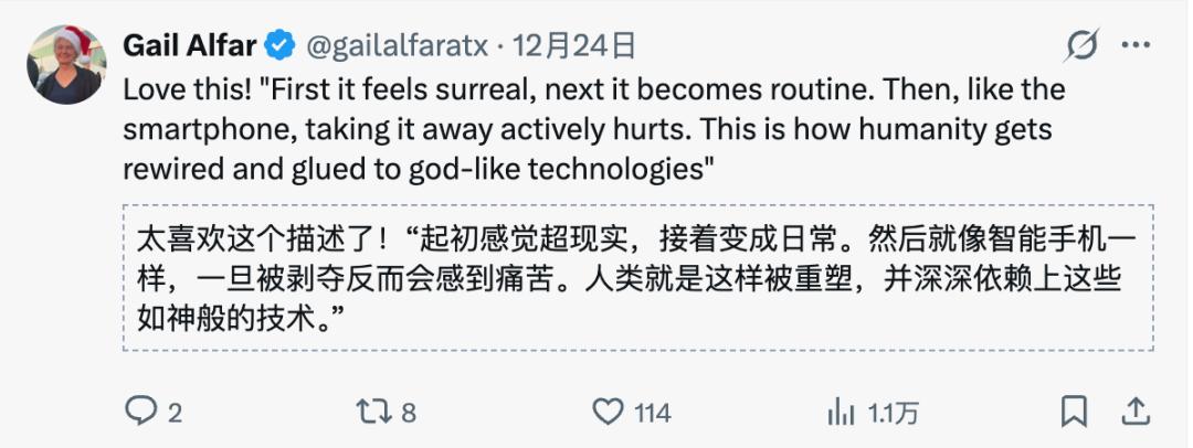 马斯克也同时转帖说,「你能感受到那种意识(智能)正在逐渐觉醒」。