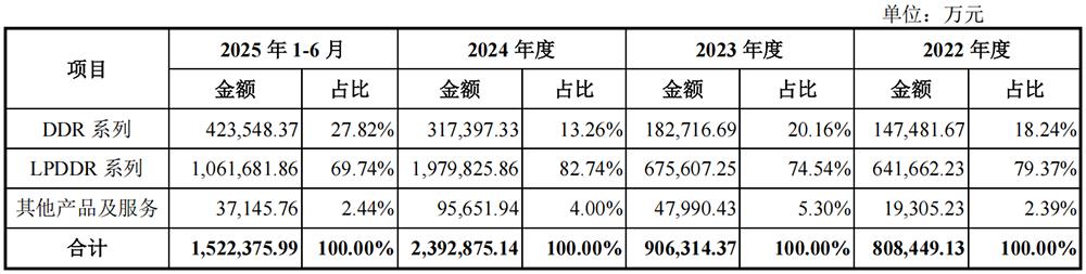 2022年至2025年上半年,LPDDR系列贡献了长鑫科技超过69%的收入。