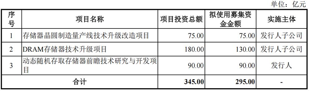 本次IPO,长鑫科技拟募资295亿元。