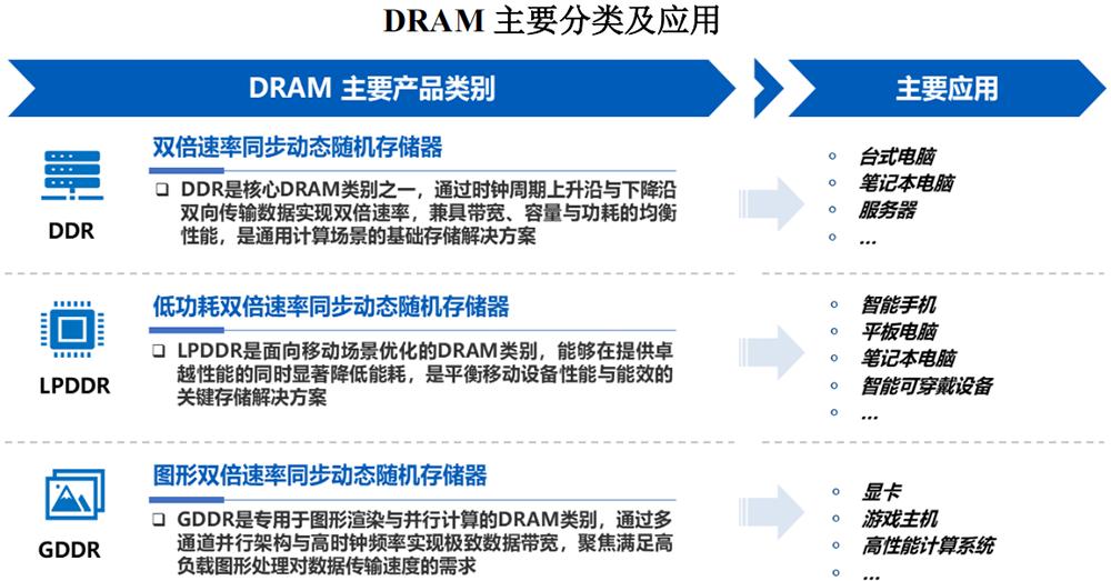 作为处理器与外存进行数据交互的关键桥梁,DRAM广泛应用于服务器、移动设备、个人电脑、智能汽车等电子设备及系统。