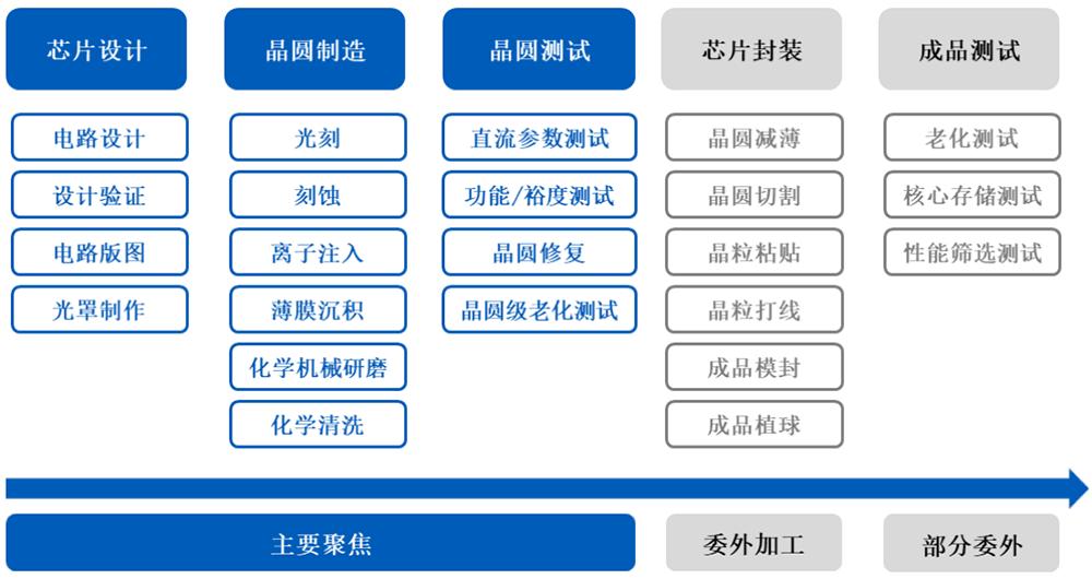 长鑫科技在芯片封装及成品测试环节采用委外生产模式,将封装环节委托给封测厂商外协生产,测试业务以自主测试为主、委外测试时为辅,模组加工及测试主要通过委外工序完成。