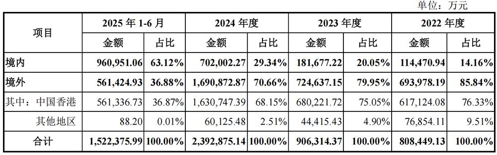 同期,其境内收入占比逐年增长,2025年1-6月达到63.12%。