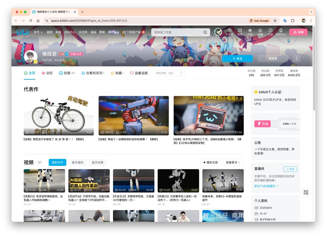 而彭志辉又是何许人也?一句话说,他是一个 B 站 up 主、机器人专家,更是一个熟练的商业玩家。