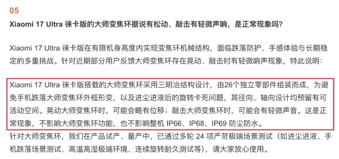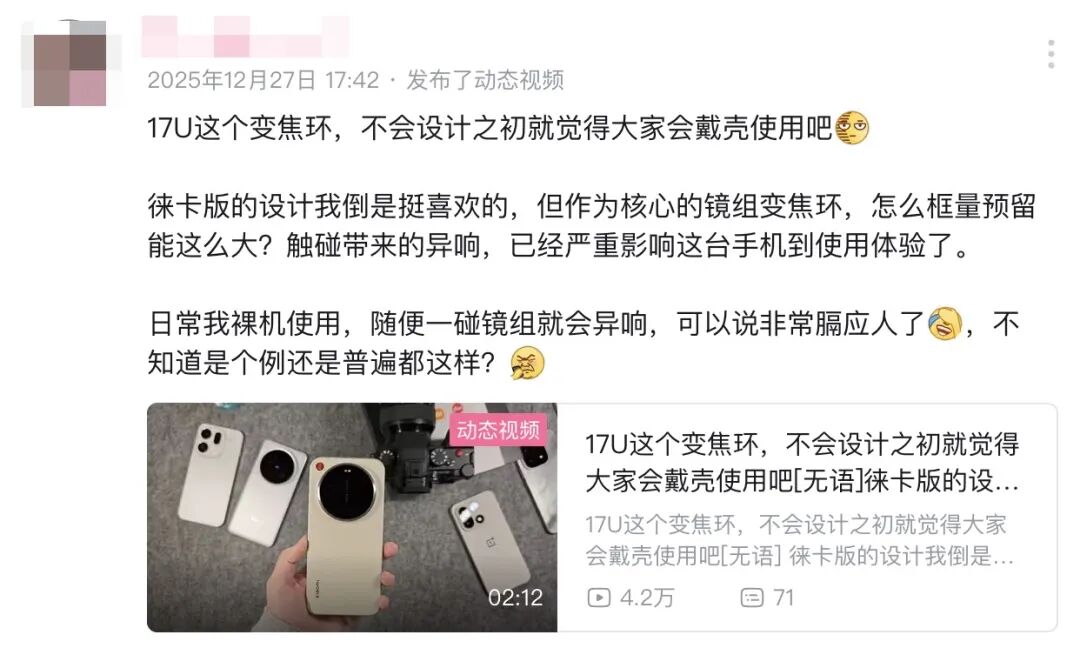 最早发现小米17 Ultra 大师变焦环松动问题的,是一批比较硬核的数码博主。