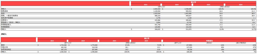 日前, lululemon发布了截至2025年11月2日的2025财年第三季度业绩报告。营收方面的增长为品牌轻轻装点门楣,期内公司全球净营收同比增长7%至26亿美元。