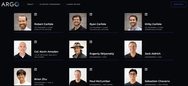 2022年,三兄弟罗伯特·卡莱尔(Robert Carlisle)、瑞安·卡莱尔(Ryan Carlisle)、柯比·卡莱尔(Kirby Carlisle)在美国创立了Argo Space公司。罗伯特曾任SpaceX的商业发射与国家安全销售总监5年,瑞安曾任工程总监9年,柯比曾任集成和测试工程师4年。
