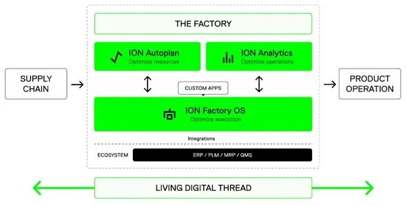 ION连接零件、供应链、生产设备和业务系统(如ERP、PLM),帮助高科技制造商优化生产效率、实现协同工作、管理复杂库存。