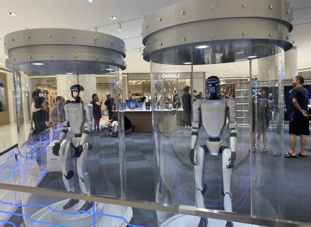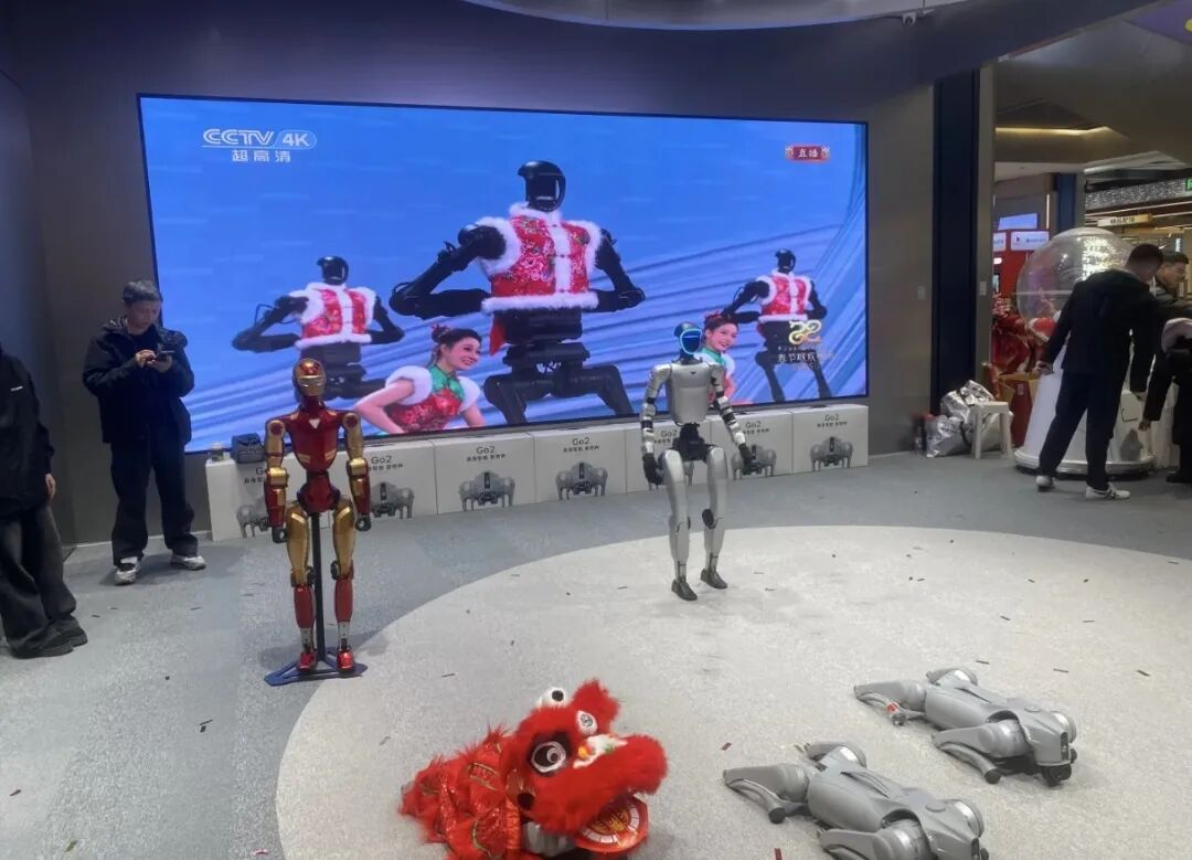 12月31日,宇树科技第一家线下门店,在北京双井的京东Mall开业,机器人劳模们拿出各种看家本领,有机器人表演后空翻,也有机器人登上拳击擂台,进店的观众还能近距离接触人气明星机器狗。