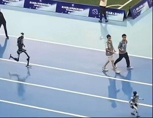 在运动赛场上,机器人们竭力比赛之余,也闹出了不少笑话,有1500米冲刺撞倒别的遥控员后肇事逃逸的。