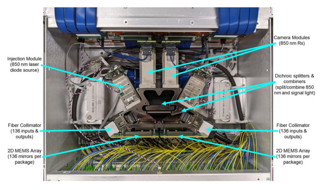 每个阵列包含176个微型反射镜,但出于良率考虑,只使用了136个。“这些反射镜都是定制的,每个都略有不同。因此,这意味着所有可能的输入输出组合的总和是136的平方,”他说道。