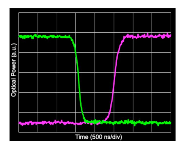 图 4: 硅光子 MEMS 交换机的上升时间 / 下降时间。