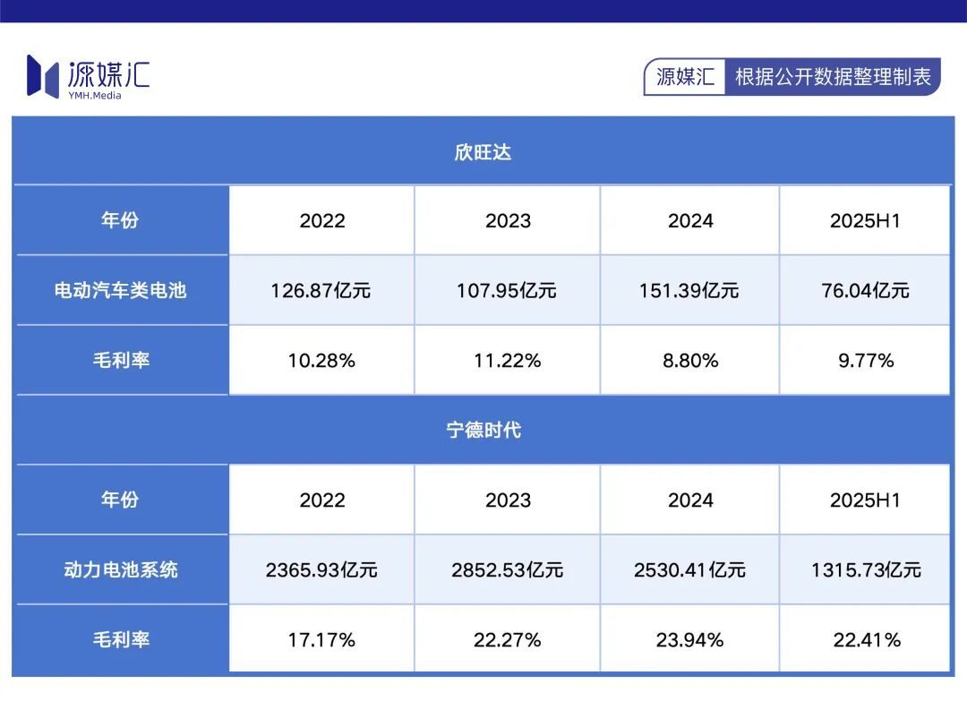欣旺达的主营业务,主要是消费类电池、电动汽车类电池和储能系统类三种。2025年上半年数据显示,欣旺达电动汽车类电池业务营收76.04亿元,毛利率仅9.77%;而宁德时代同期动力电池系统营收超1300亿元,毛利率高达22.41%。