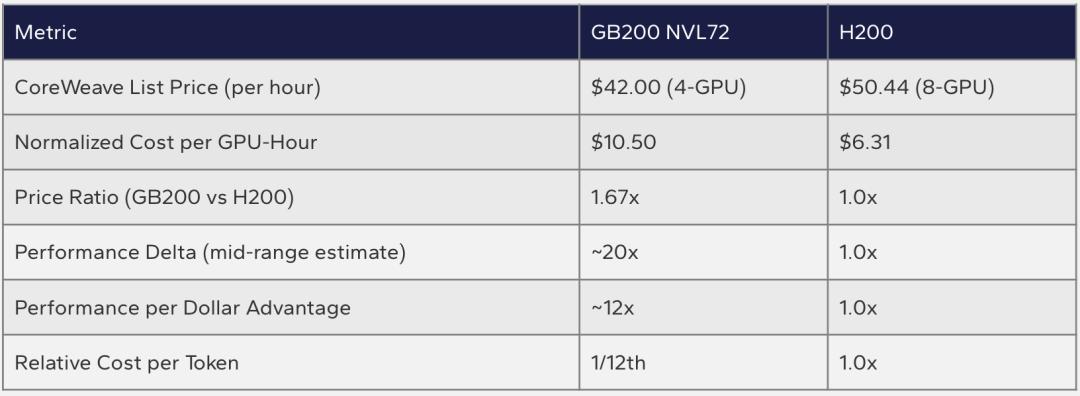 GB200每小时单价大概是贵一倍左右,但这根本不重要。因为机柜级NVLink互联+软件调度能力,彻底改变了成本结构。
