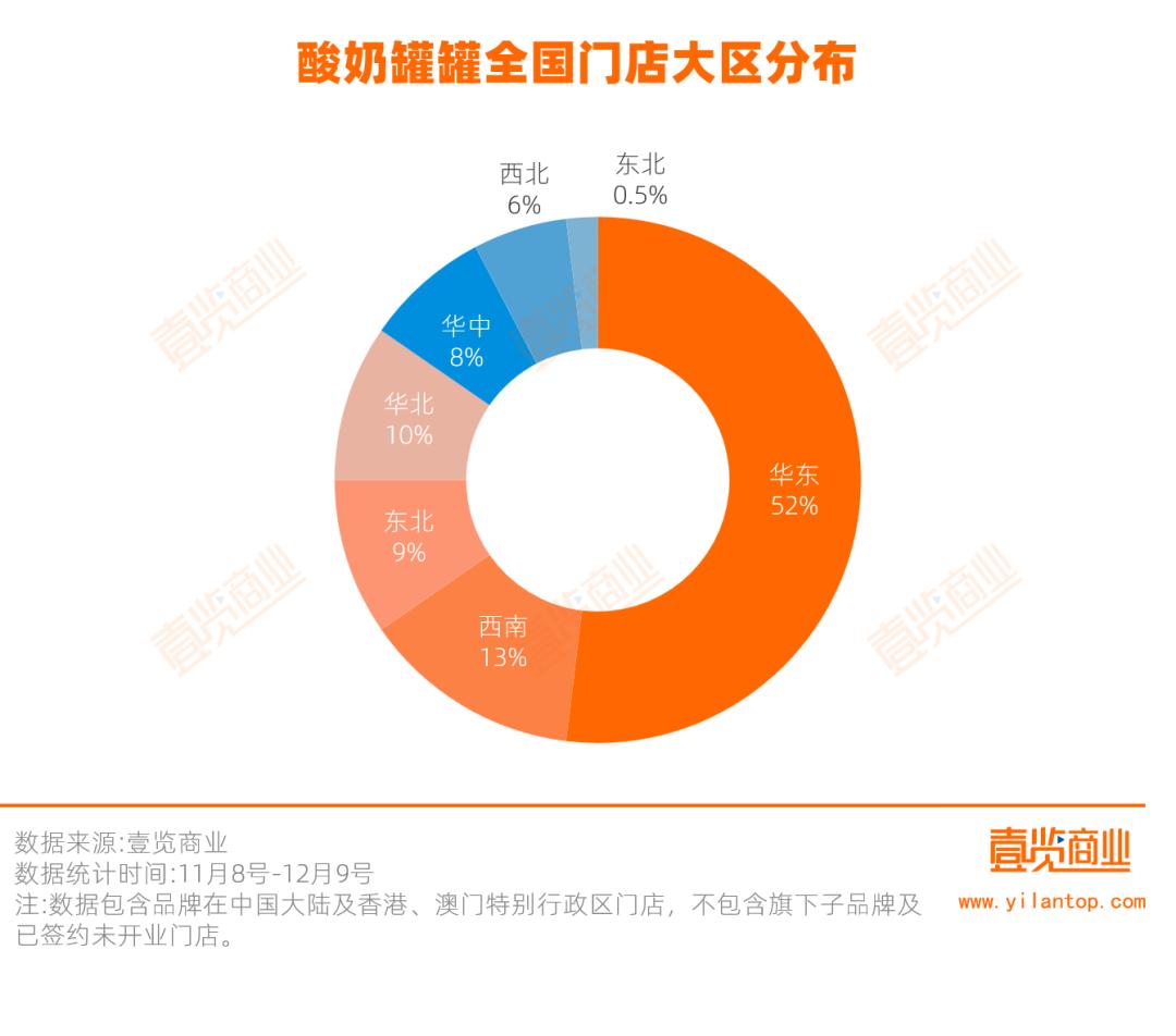 数据印证了这一判断。据茶咖观察统计,11月8日至12月9日期间,酸奶罐罐关闭52家门店,其中新一线城市关店数量占闭店总数的28.85%,且高达86.54%的门店位于购物中心。