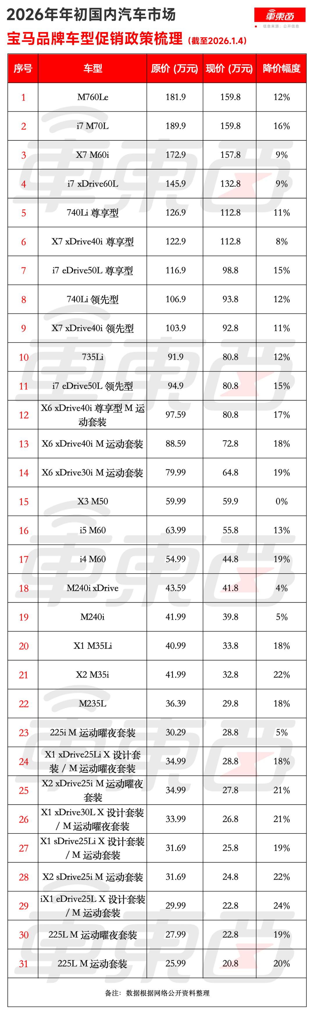 01.宝马31款车型最狠狂降30万,合资加码年初价格战