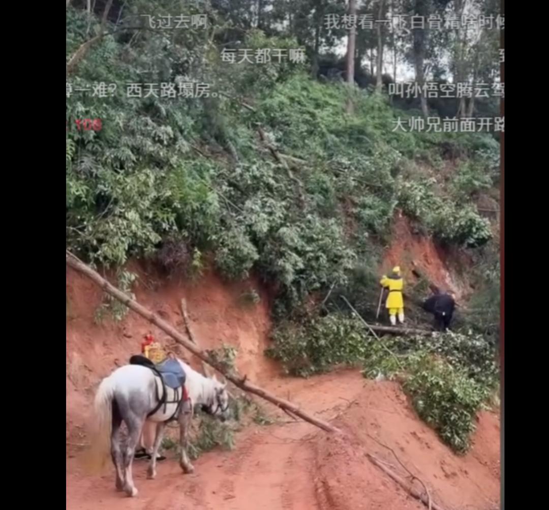 从评论区和弹幕来看,观众对这种直播形式很买账,一堆人说觉得放松又快乐,搞笑四人组不停走走走,可以陪自己上班磨时间,有些小细节,总能莫名其妙戳中笑点,他们发现唐僧在上下坡的时候不敢骑马,直呼“师傅不信任小白龙”,他们发现,取经途上最大的困难,竟然是一根倒在路中间的树,疯狂开玩笑说“不准搬”,让大师兄腾云驾雾飞过去。