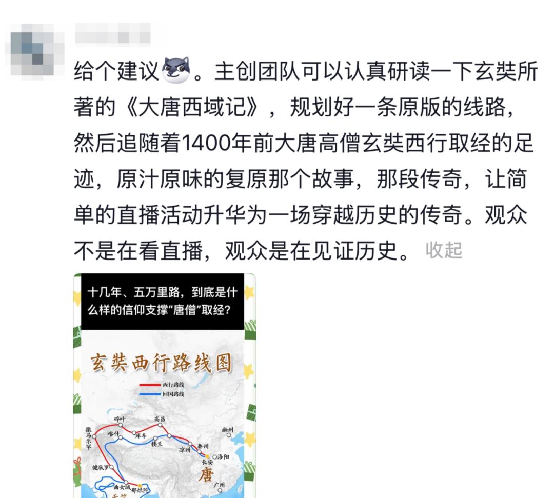 也有人是来过导演瘾的,一个劲出主意帮他们设计剧情,想着怎么做大做强,说是可以完全按历史上玄奘的路线重走一次,搞不好能火遍全网,成为顶流主播。