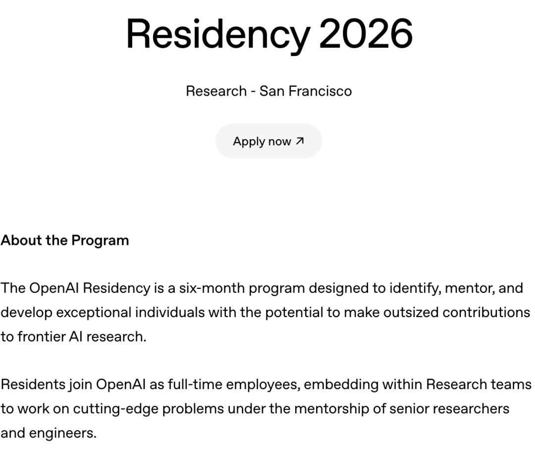 申请链接:https://openai.com/careers/residency-2026-san-francisco/