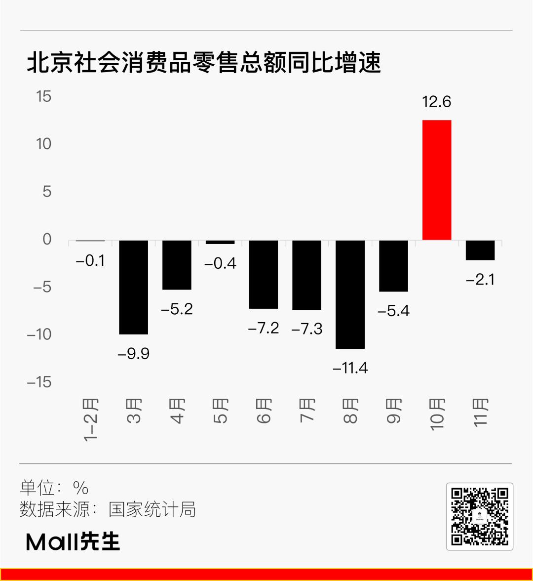 北京除了10月份增长了一把之外,全年都在“负增长”区间里,截止11月份的表现是同比下跌3.1%。