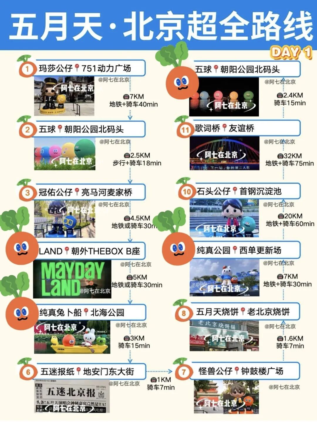 网友自制的五月天北京打卡地图 | 来源:小红书@阿七在北京