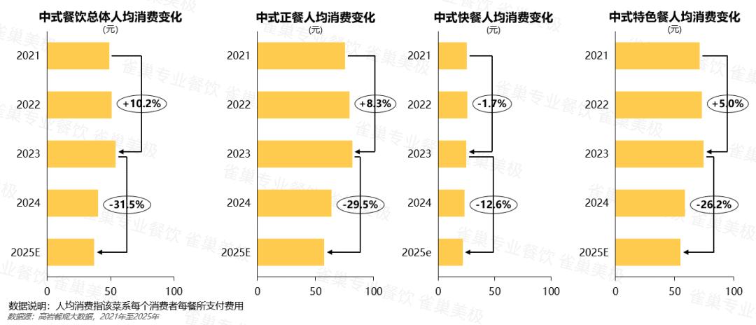 ◎不同品类2021-2025年人均消费变化,图源:雀巢专业餐饮 《2026中国中式餐饮白皮书》