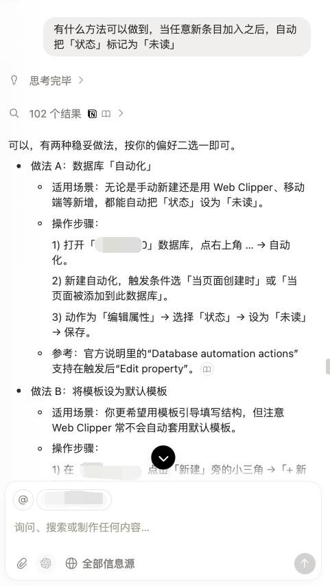 无论是优化剪藏功能,还是搭建个人化的数据库,Notion 3.0 本质上没有太多「新知识点」要学习,大部分功能都是已经存在的。我们要做的,是指令 agent 去操作这些功能,而且是一步一步地、有条理地操作,以实现目标效果。
