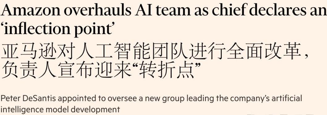 12月17日,亚马逊CEO安迪·贾西亲自宣布,旗下负责大语言模型的AGI团队、自研芯片的Annapurna Labs,乃至前沿的量子计算团队将进行创造性“缝合”,转变为直属于他的全新“AGI组织”。而公司AGI部门原负责人将于明年离职。