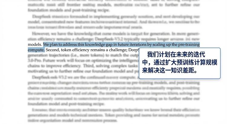 这一点在DeepSeek-V3.2的技术报告里说得很清楚。他们在结论部分直接承认,模型在世界知识广度上的不足,根本原因是总训练算力比前沿闭源模型少。要补这个短板,只有一个办法,扩大预训练算力。