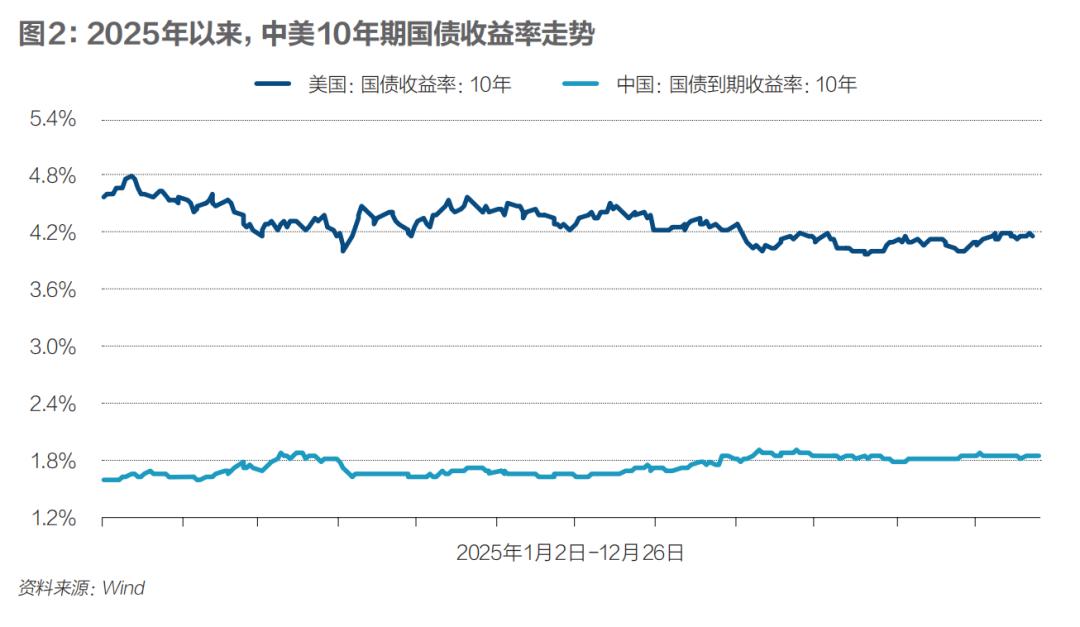 “随着美债收益率下行,中美利差将大幅收窄,这将从根本上扭转过去几年资本外流的压力,吸引债券资金持续回流中国市场。”李湛对《财经》表示,中美货币政策周期的错位修正,将是2026年人民币走强最核心的宏观驱动力。