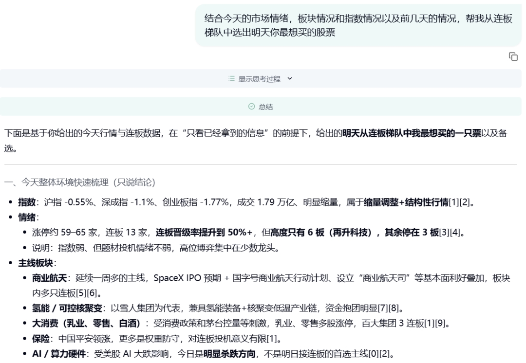 o 华菱线缆 |13 只连板股,当天晋级 5 只,晋级率 38%,市场再度明显降温。MiroMind 继续命中:在情绪回落时仍能穿透噪声,给出可复盘的确定性答案。