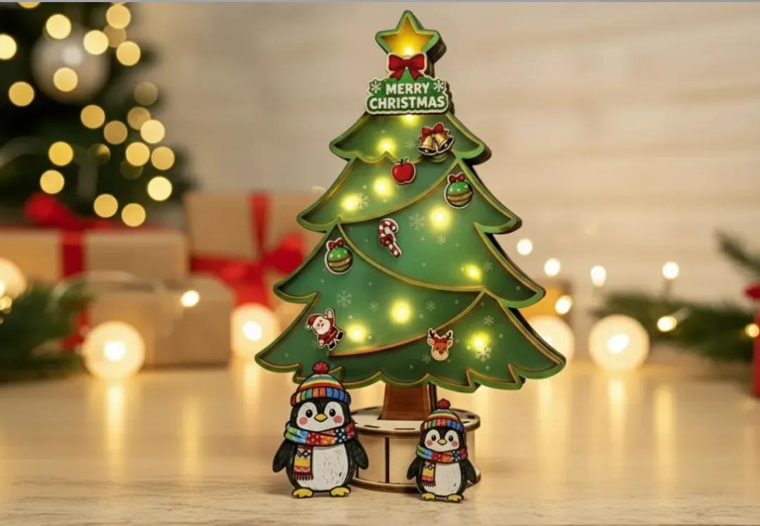 用激光雕刻机、激光切割机把橡木胶合板做成圣诞树(图源:Atomm社区;作者:睿远Rayfar)