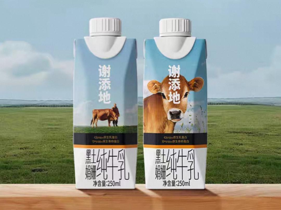 在产品端,谢添地主打“全球1%娟姗牛”“4.3g/100ml高蛋白”等卖点,主要从产地出发,强调东北地区黑土地养育的优质牧草和奶牛,延续了国产品牌常见的“奶源地”叙事。