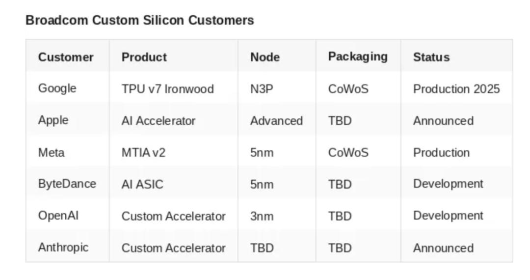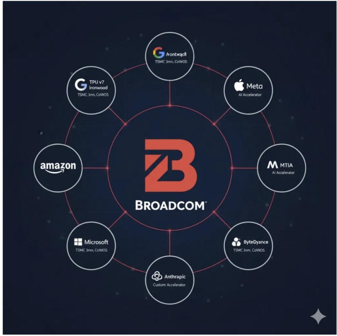 博通则走出不同路线,专注于客制化AI芯片。博通为Google打造的TPU已证明此模式可行,今年更将服务扩展至Anthropic等外部客户,相关订单规模高达数百亿美元。