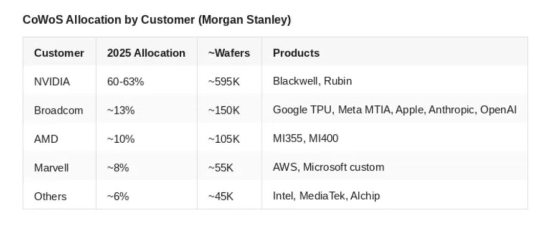 NVIDIA 预计在 CoWoS-L (Blackwell 双芯片设计所需的变体)中拥有 70% 以上的份额,这创造了结构优势,但如果台积电决定多元化发展,也会带来集中风险。