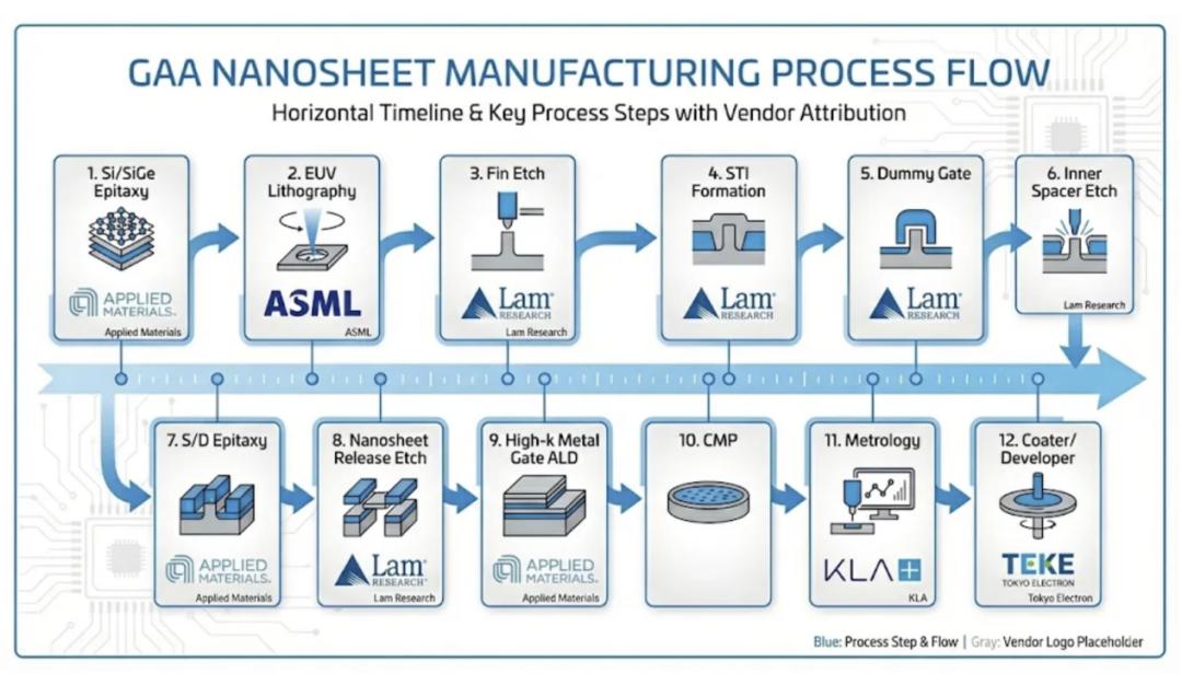 GAA转型引入了4-5个全新的工艺模块,使制造流程延长了约20%。而这些步骤中的每一个都需要专用设备。