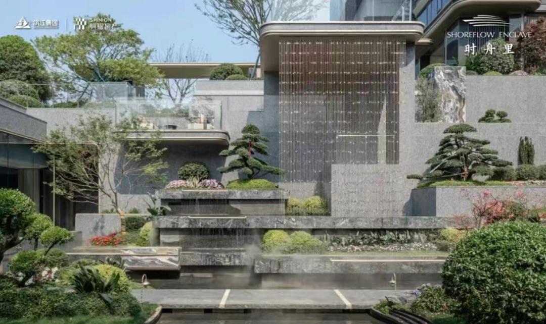 比如,滨江·时舟里就在首层向上抬升3米,再加上4.5-5.5米高的楼栋架空层,住宅首层距离地面7.5-8.5米,相当于传统三楼的高度。与此同时,向下挖掘16米深的下沉式庭院,双向延展加大 竖向的景观高差,再借助空中连桥、自动扶梯、花径阶梯等,营造一个立体空中花园。