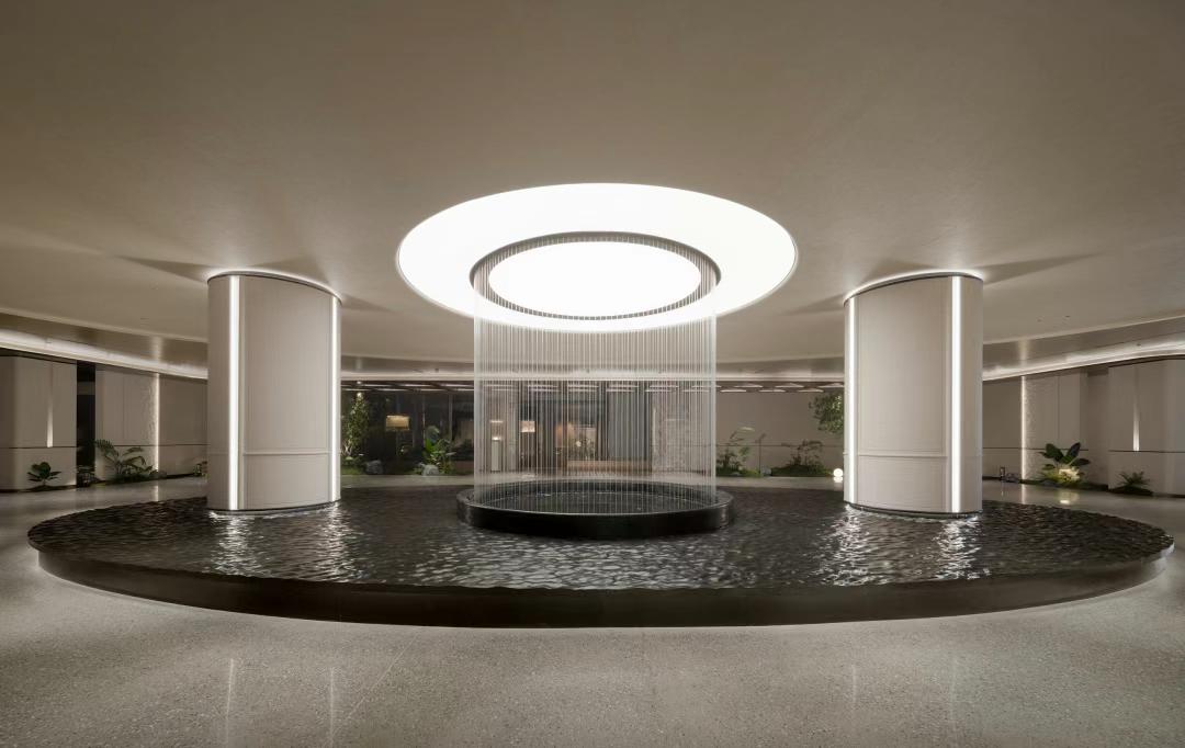 项目规划了一个四层通高的中央景观庭院,形成类似“山谷”的结构, 中庭以多层瀑布景观、垂直绿植和采光通廊为核心,为地下空间引入自然光线和空气, 使地下空间实现“全明+自然通风”,消除了传统地库的压抑感和密闭感。