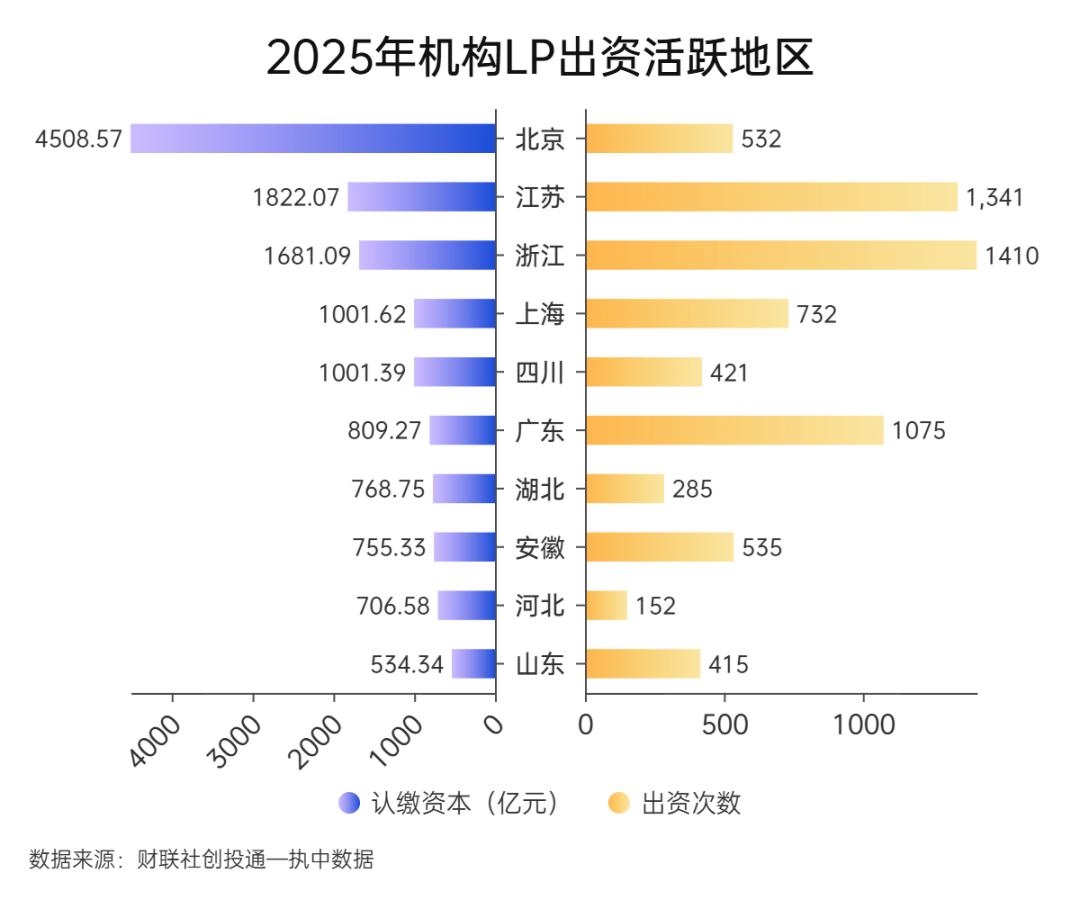 LP地区分布:浙江出资最活跃,北京出资规模领先
