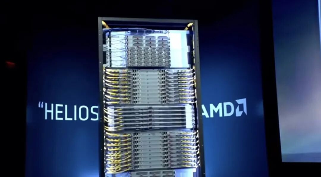 Helios的每个计算托盘包含四块MI455X GPU,可与EPYC Venice处理器和Pensando网络芯片集成,全部采用液冷技术。