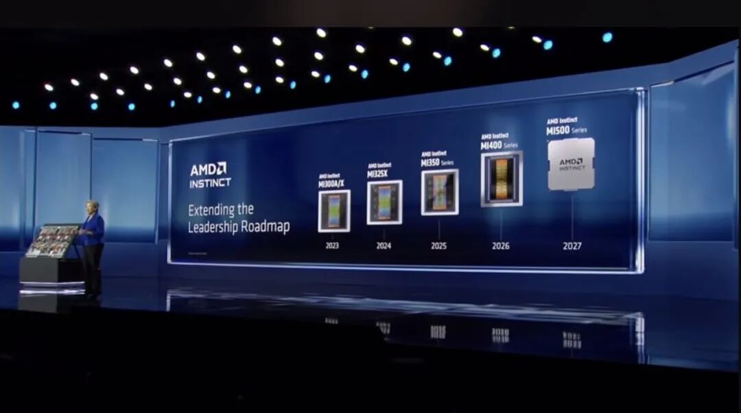 她还当场剧透了AMD两年芯片路线图:下一代MI500系列有望在2027年推出,核心亮点包括基于CDNA 6架构、搭载HBM4e、采用2nm工艺。