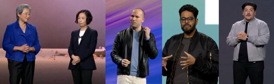 ▲AMD董事会主席兼CEO苏姿丰(Lisa Su)、Woeld Labs联合创始人兼CEO李飞飞、OpenAI联合创始人兼总裁格雷格·布罗克曼(Greg Brockman)Luma AI首席执行官兼联合创始人阿米特·贾因(Amit Jain)、Liquid AI CEO拉明·哈萨尼(Ramin Hasani)(从左至右)