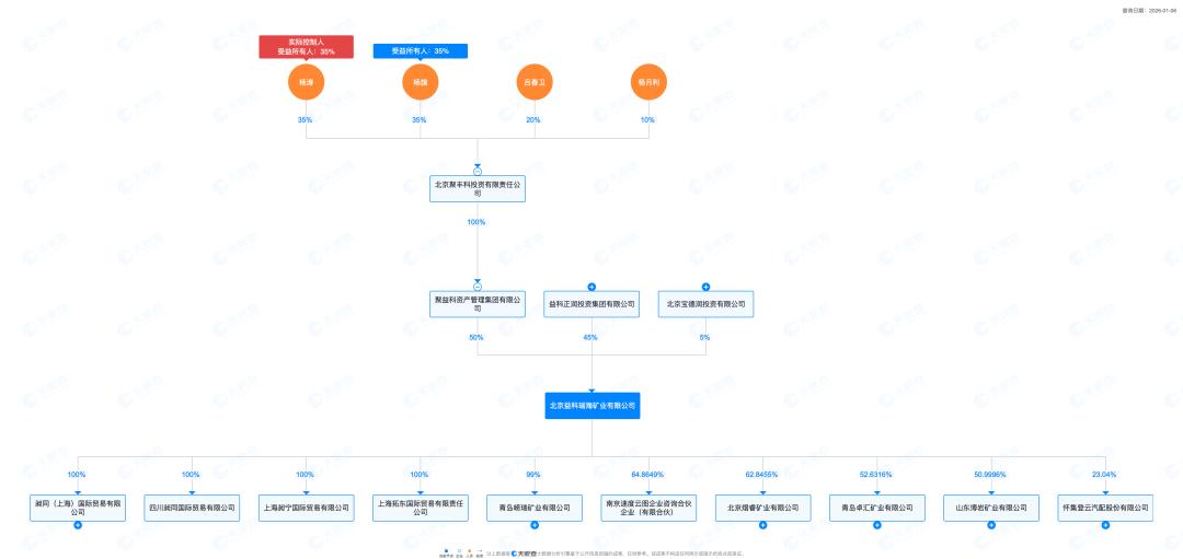 杨涛早期参与家族企业运营,以总经理身份执掌河南汇源化工集团。随着“益科系”扩张,杨涛逐步接手核心业务,先后担任北京聚丰科投资有限责任公司法定代表人、聚益科资产管理集团有限公司董事等关键职务,成为“益科系”矿业投资、金融服务两大核心板块的核心决策人之一。