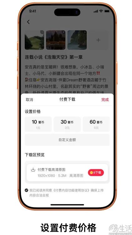 据了解,该功能支持高清原图付费下载、单篇笔记付费阅读、笔记合集付费解锁等场景,覆盖摄影、绘画、壁纸设计,以及故事创作、干货分享等多种内容。同时该功能支持创作者自行定价,并灵活设置试读比例/篇数等。