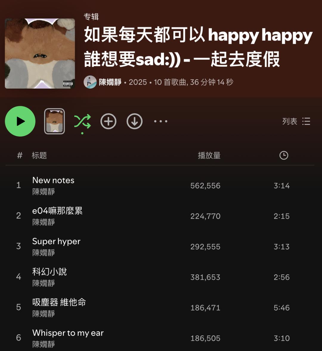 但如果换一个角度,我们能看到华语乐坛的另一面。比如,在平台的盘点中,你很难看到陈娴静的名字,但她的新专辑却在2025年备受乐迷青睐。