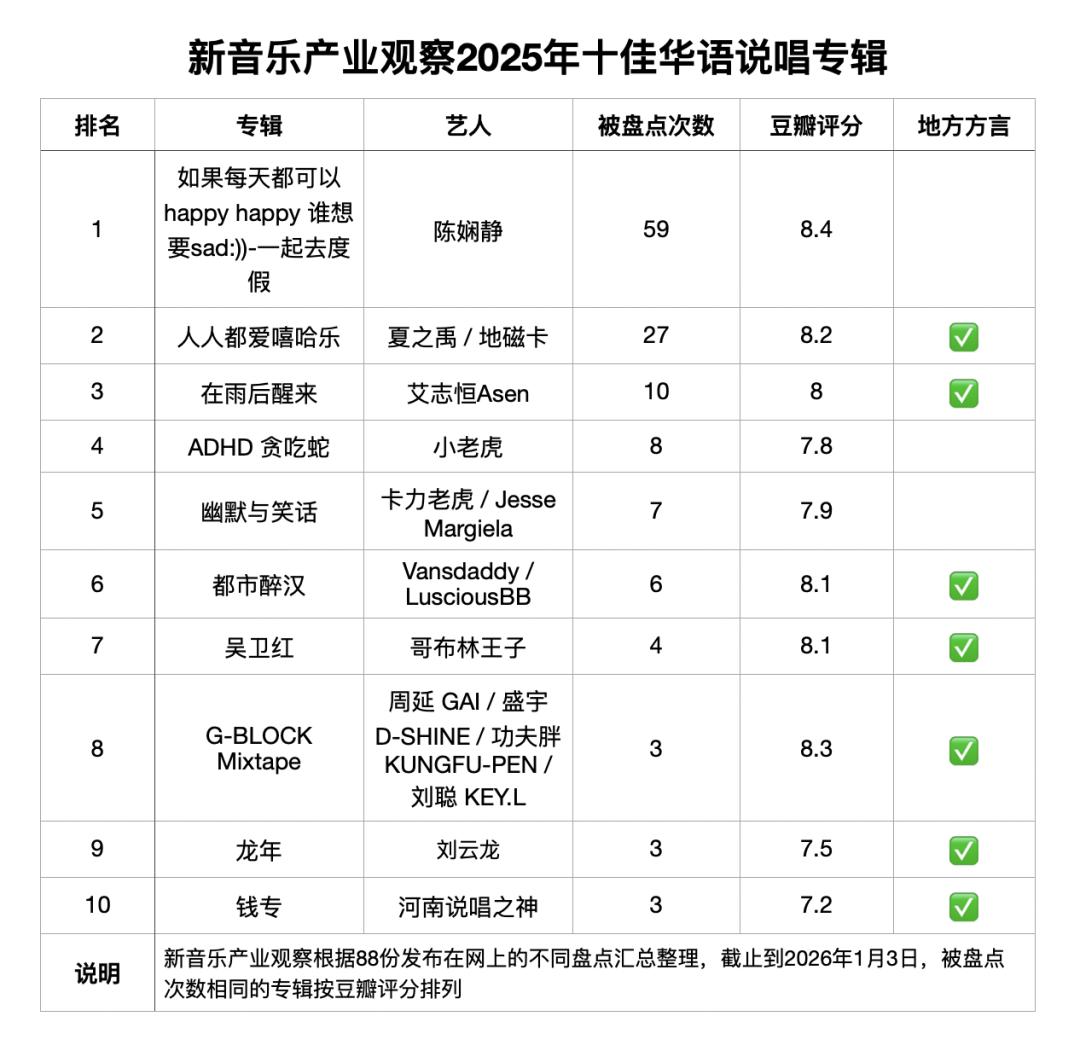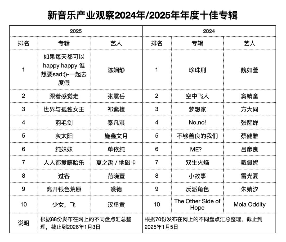 有意思的是,尽管有人认为2025年是“乐坛小年”,但相比上一年,我们同期采集到的盘点样本不是更少,而是更多。