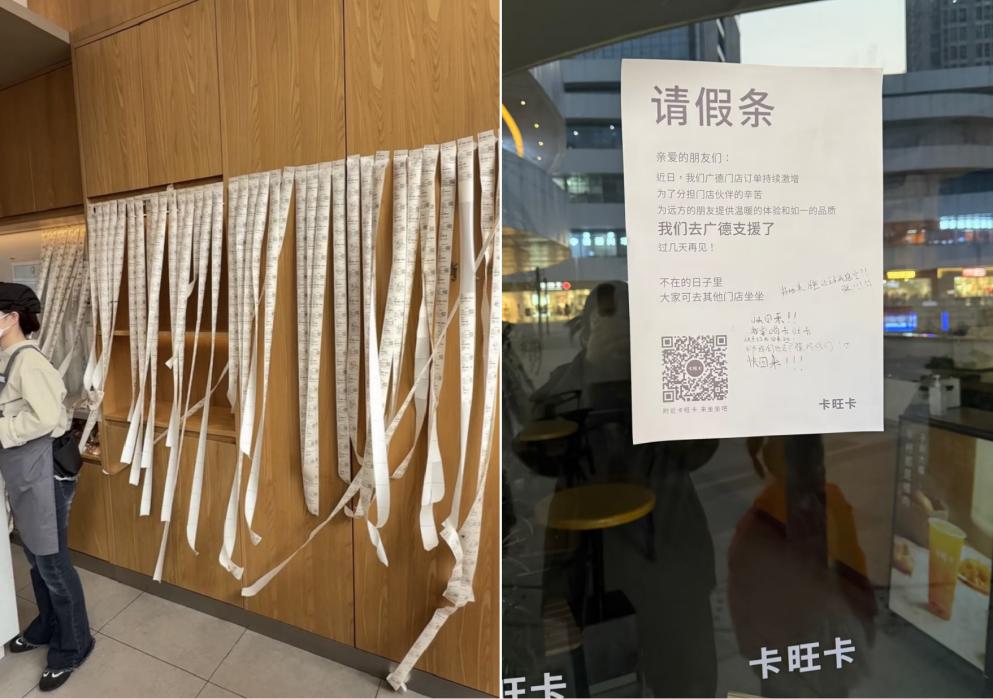 为应对单量爆发,卡旺卡从安徽全省调集200多名员工支援广德,合肥多家门店就向当地消费者贴出“请假条”,直至12月20日,广德店创下22862杯的世界吉尼斯纪录,元旦假期订单持续贴满整墙。